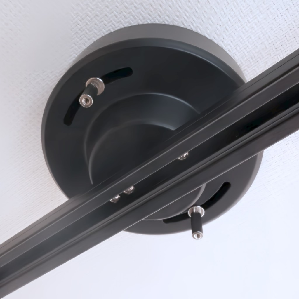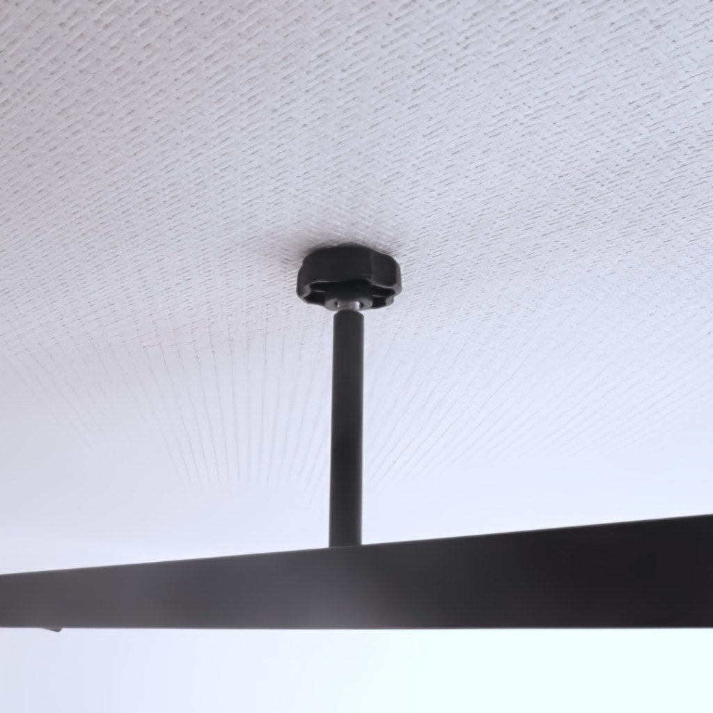ネジを全て留めたら、レールの両側上にあるアジャスターネジを右に回して天井と設置させ、安定させます。