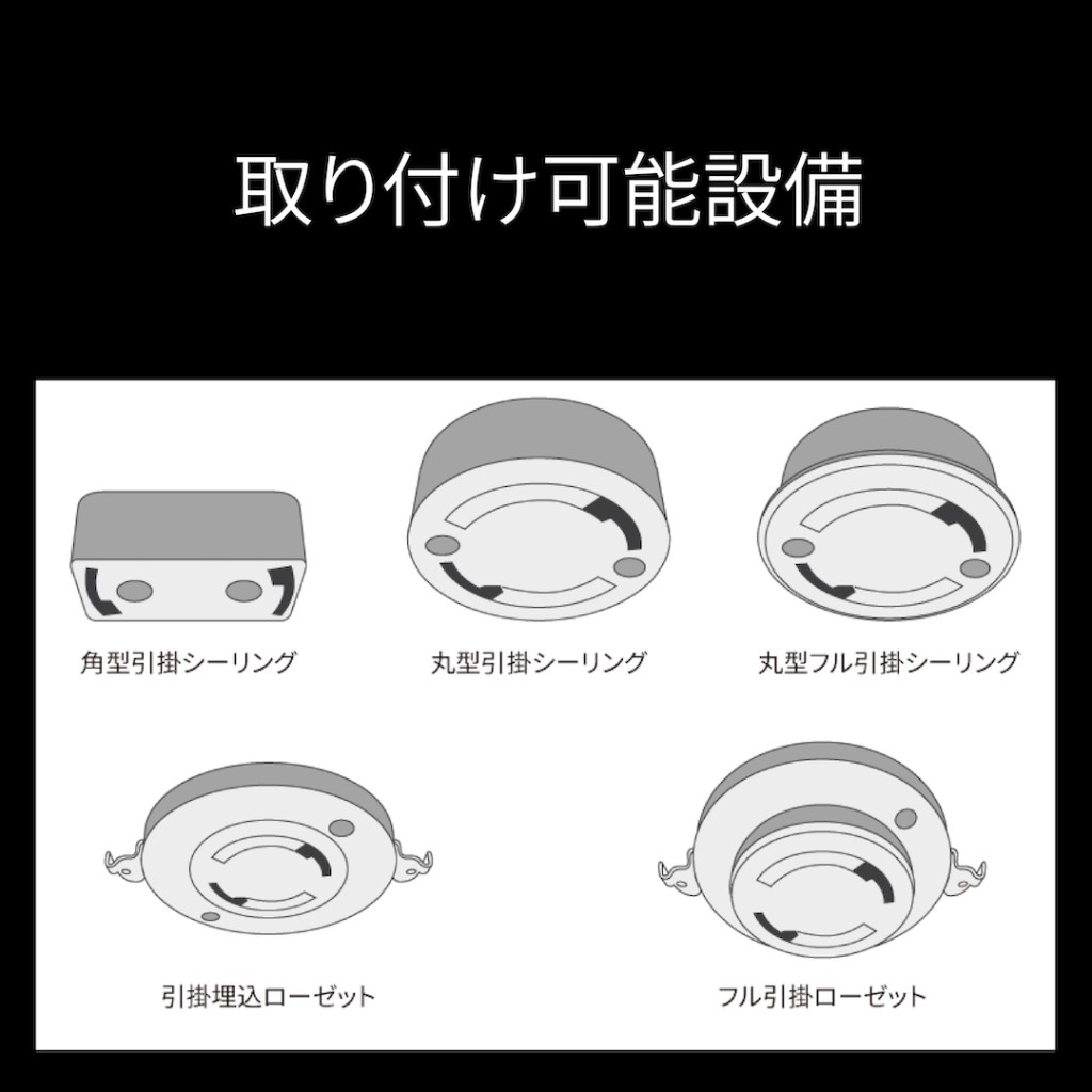 天井に左の取り付け設備のいずれかが設置されているか確認します。
